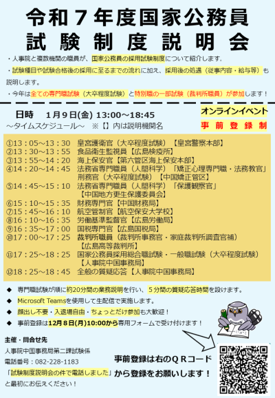 | ⑨16:35~17:00 | 国税専門官採用試験 | 広島国税局 | |