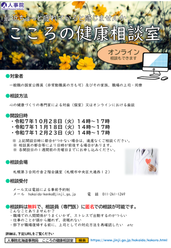 北海道内で働く一般職の国家公務員(行政執行法人職員を除く)及びそのご家族、職場の上司・同僚