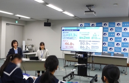 人事院関東事務局(さいたま新都心)では、小中高生を対象に国家公務員のお仕事説明を含めたオフィス(職場)見学を実施しています。