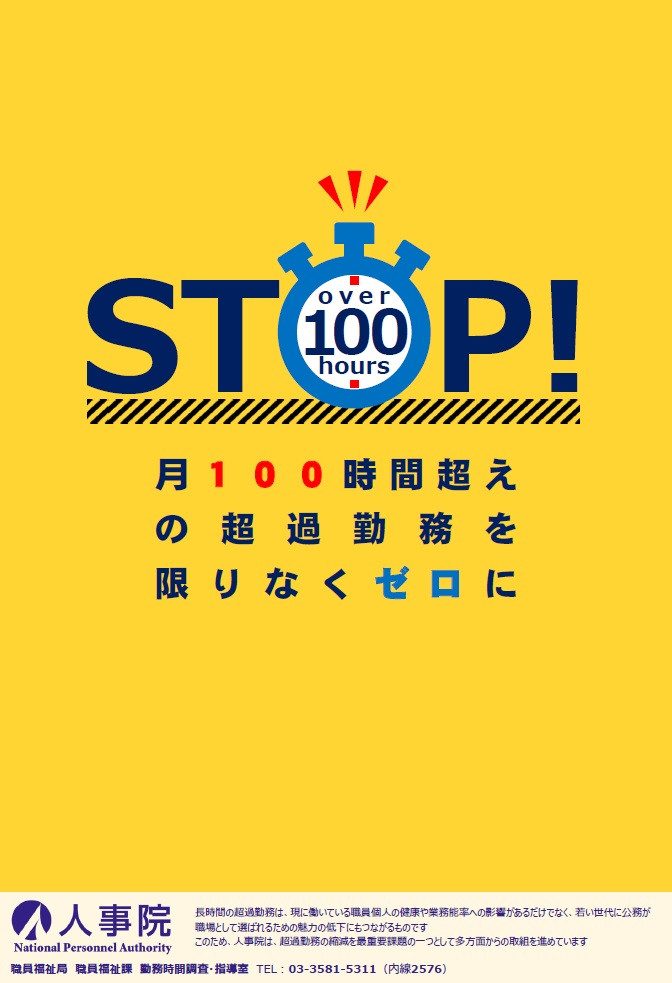 「月100時間超えの超過勤務を限りなくゼロに」(周知チラシ)