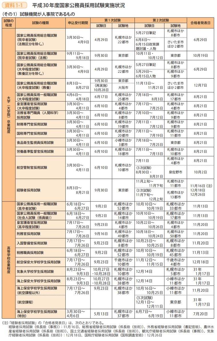 資料1-1 平成30年度国家公務員採用試験実施状況