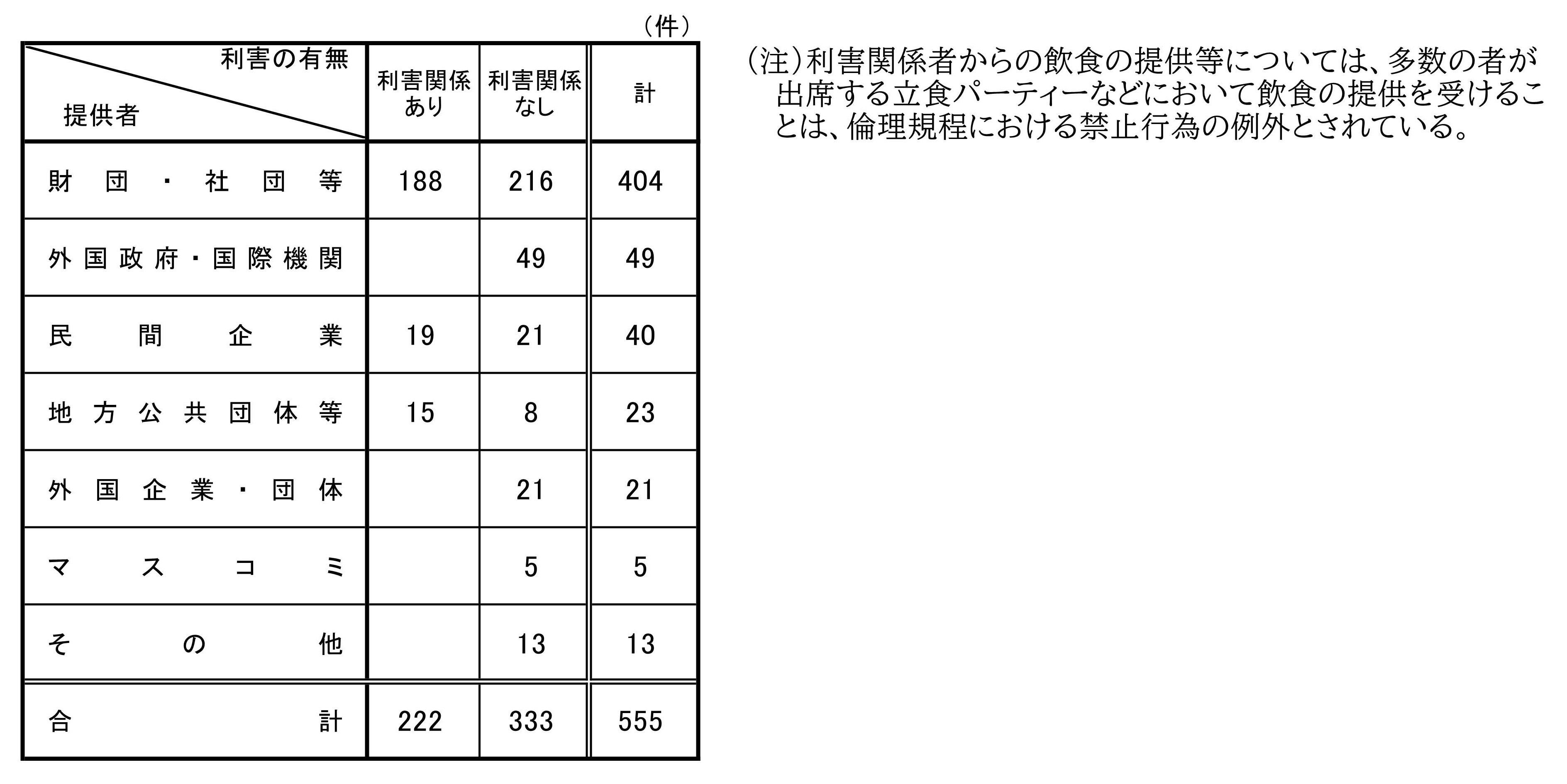 (1)金銭、物品等の供与