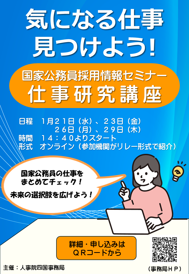 様々な機関の担当者が、業務内容ややりがい、キャリア形成、ワークライフバランスなど、リアルな情報をリレー形式で紹介します。