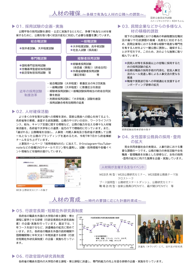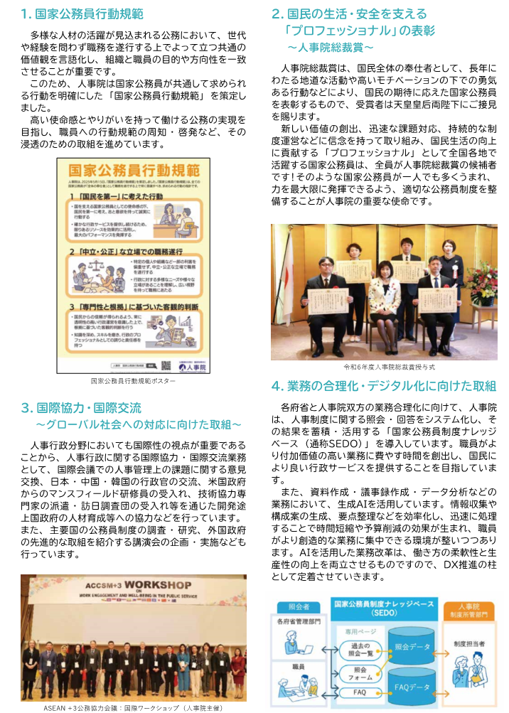 このように人材局は、成績主義の下、人事行政の公正性の確保を図るという目的を達成するため、各種施策を展開しています。