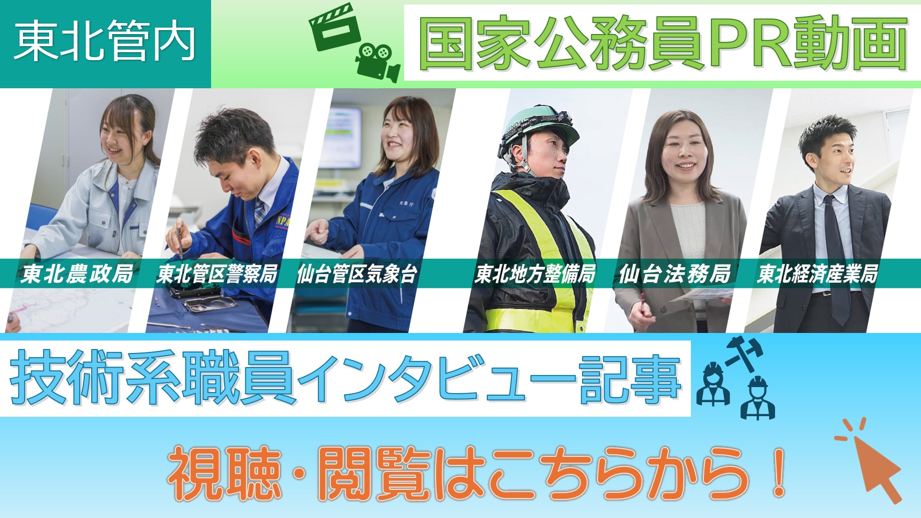 東北ではたらく国家公務員たちの「PR動画」と「技術系職員インタビュー記事」を掲載しました。